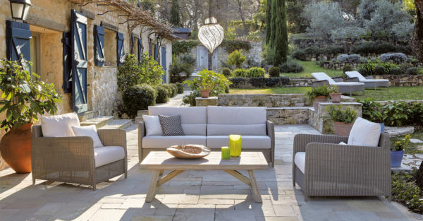 Chaise longue en résine tressée – coussins d’assise-dossier