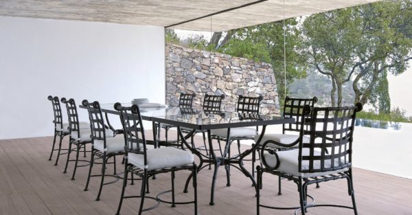 Dining armchair with forged aluminum frame – Seat and back cushions